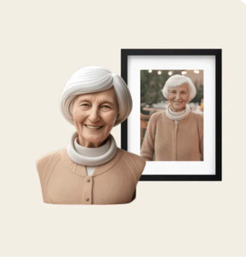 Create un omaggio senza tempo con un ritratto 3D personalizzato che fa vivere il loro ricordo attraverso le generazioni.